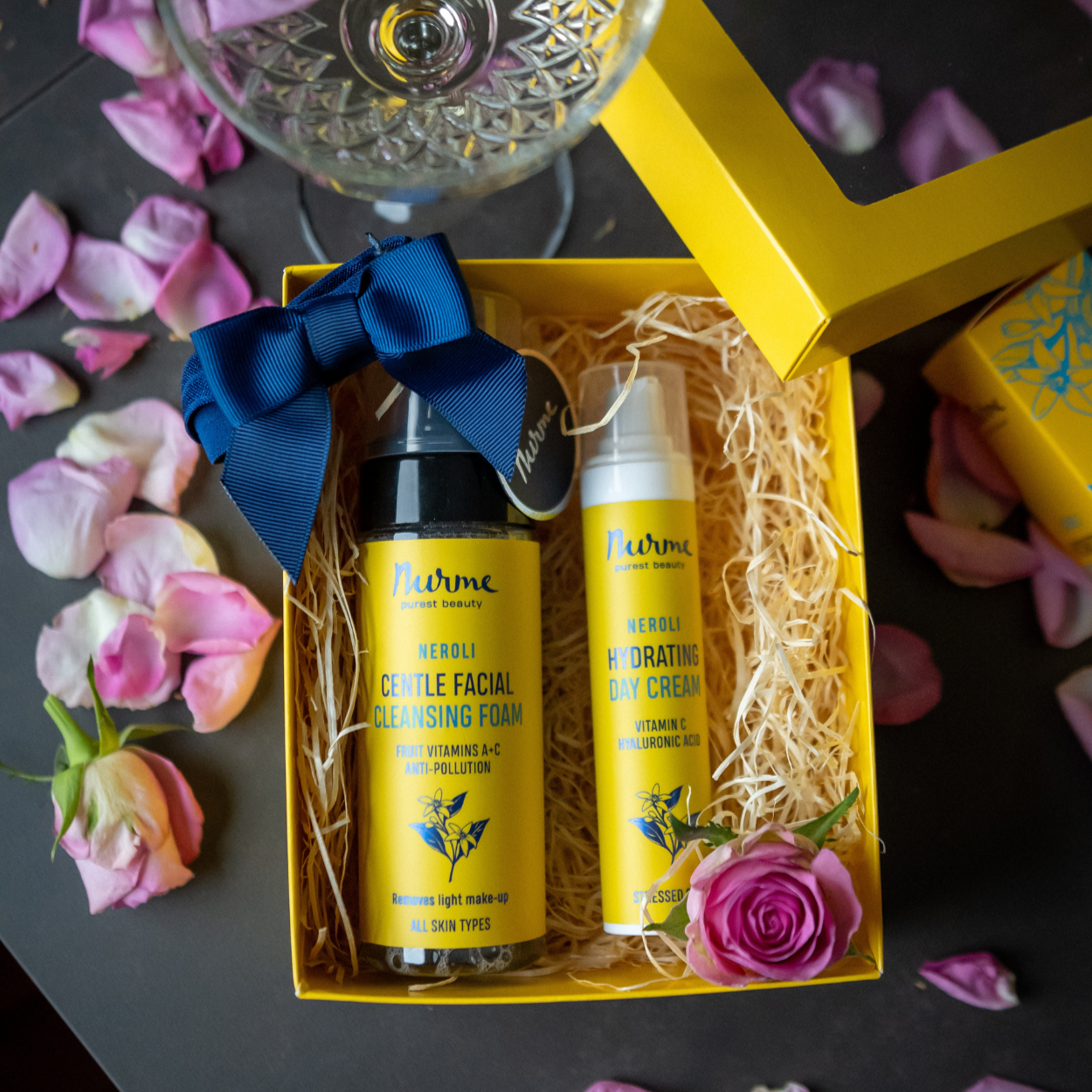 Le coffret cadeau Nurme "Routine du Matin" contient une Crème de Jour au Néroli (50 ml) et une Mousse Nettoyante Visage au Néroli (150 ml) dans une élégante boîte cadeau. Ces produits de soins visage de haute qualité sauront séduire toutes les femmes. "Routine du Matin" est le choix idéal pour un cadeau d'anniversaire ou à placer dans la hotte du Père Noël.